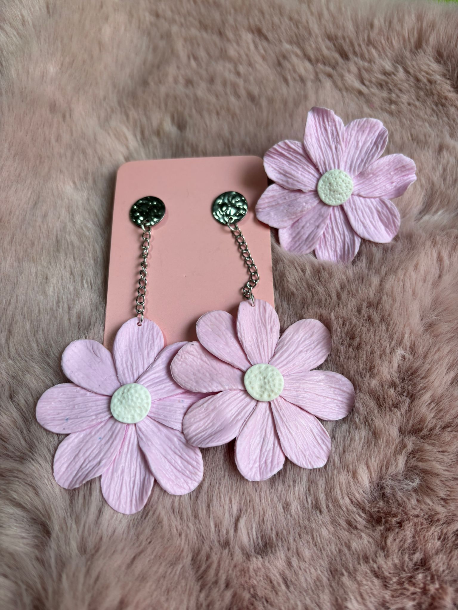 Conjunto formado por un par de pendientes y un anillo compañero totalmente artesanales con apliques de acero e hipoalergénicos